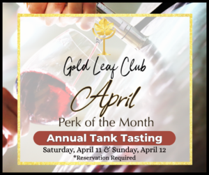 Annual Tank Tasting. – Saturday, April 11 & Sunday, April 12.